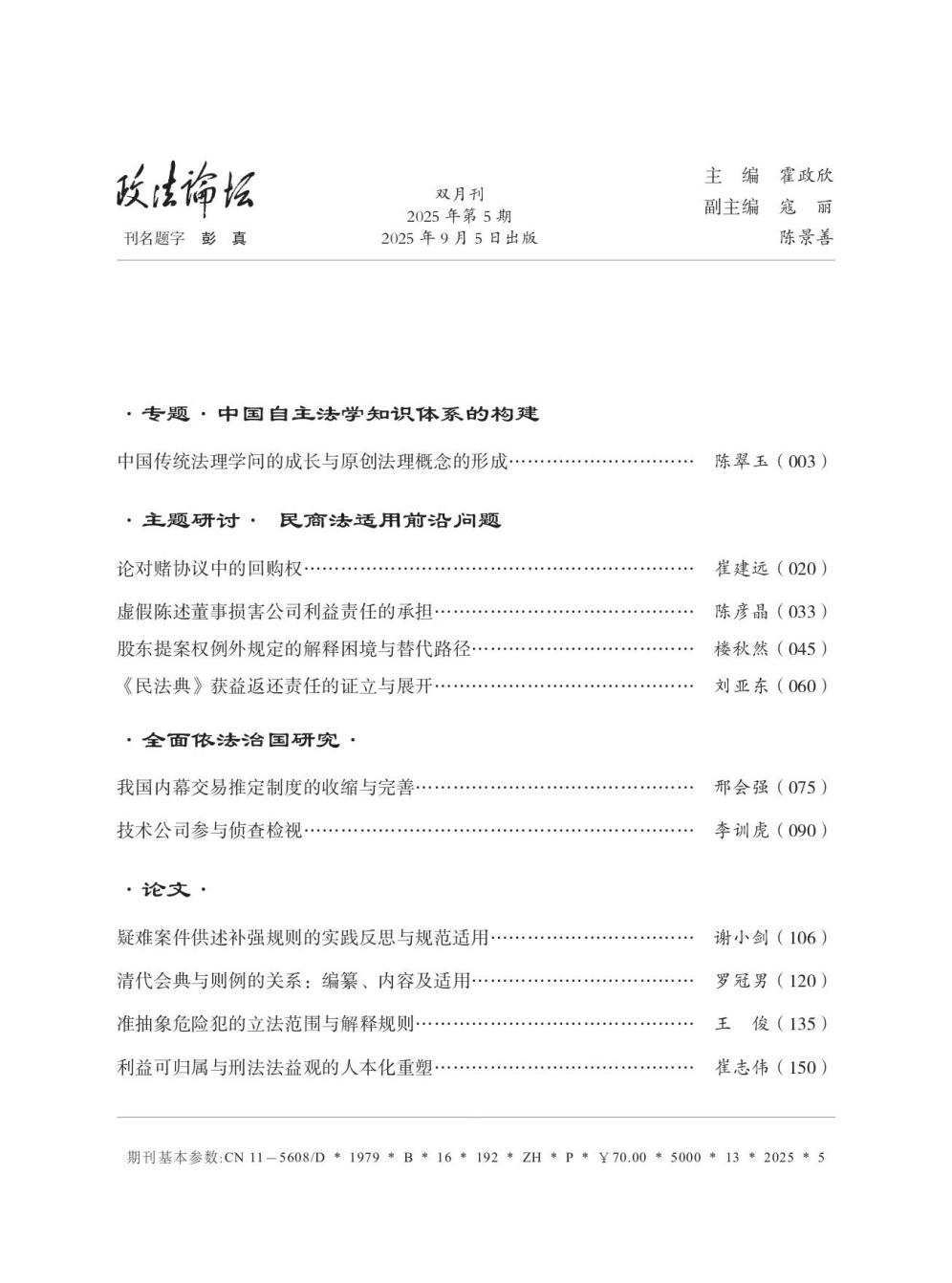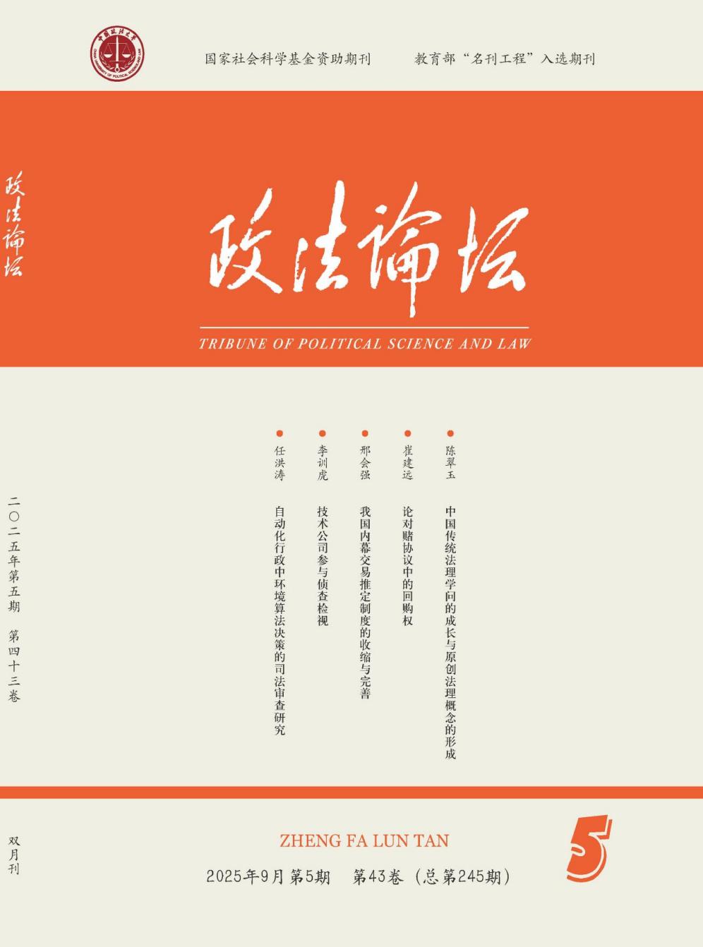 文摘来源:《政法论坛》2025年第5期目录及摘要
